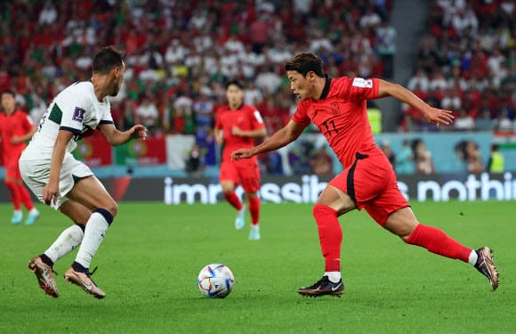 3일 오전(한국시간) 카타르 알라이얀의 에듀케이션 시티 스타디움에서 열린 2022 카타르 월드컵 조별리그 H조 3차전 대한민국과 포르투갈 경기. 후반 한국 황희찬이 포르투갈 진영에서 돌파를 시도하고 있다. 2022.12.3