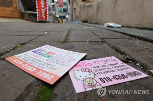 서울 시내 거리에 떨어진 대출 전단지. 연합뉴스