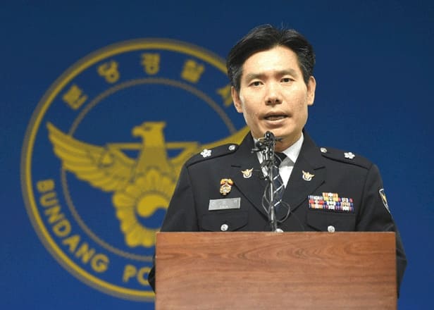 2015년 경기 성남 분당경찰서에서 신현택 당시 분당경찰서장이 브리핑을 하고 있다. 그는 2020년 말 그랜드하얏트서울 대표로 취임했다. photo 뉴시스