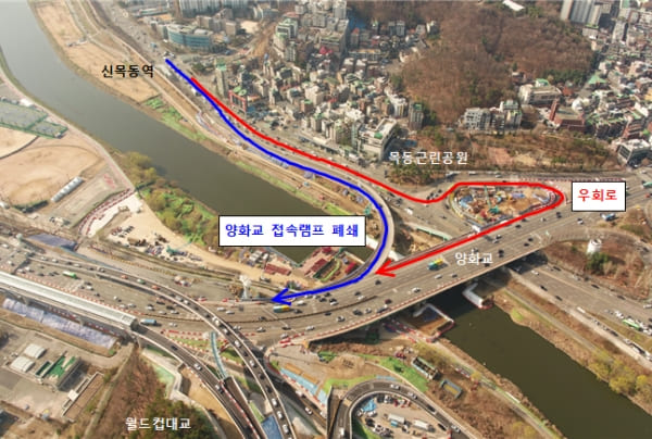 기존 안양천로에서 노들로 방향으로 양화교 접속램프를 이용하는 차량은 목동근린공원에서 좌회전후 양화교방향으로 우회전하는 우회도로를 이용하면 된다.