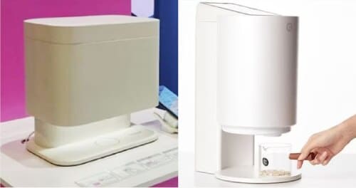 롯데헬스케어가 내놓은 맞춤형 영양제 디스펜서(왼쪽)와 스타트업 알고케어의 제품(오른쪽). 알고케어는 롯데헬스케어가 자사 제품을 베꼈다고 주장하고 있다. /롯데헬스케어·알고케어