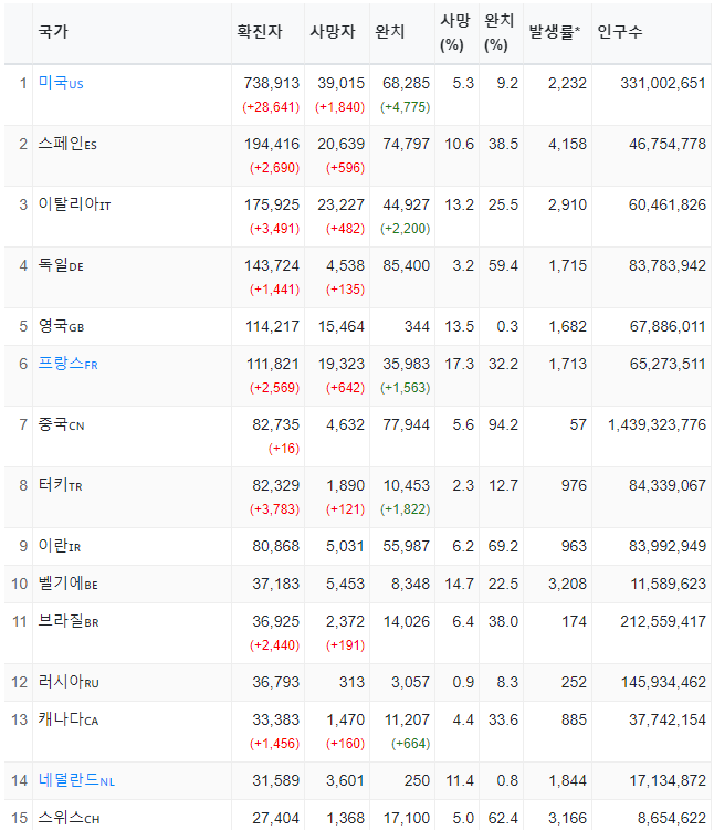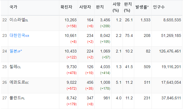 사망률이 10% 이상인 나라들이 수두룩 한 걸로 보면