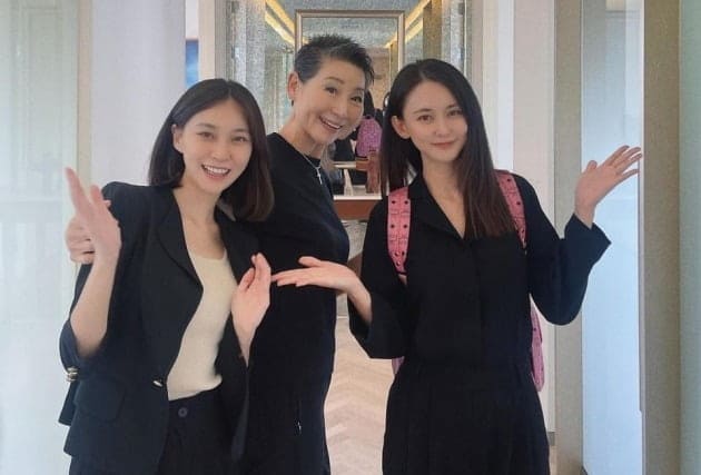 듀자매와 김성주 성주그룹 회장(가운데)