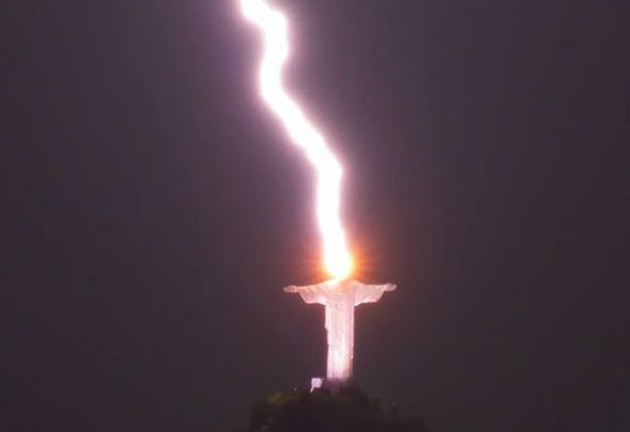브라질 리우데자네이루의 거대 예수상이 벼락을 맞는 모습이 포착돼 화제를 모으고 있다.