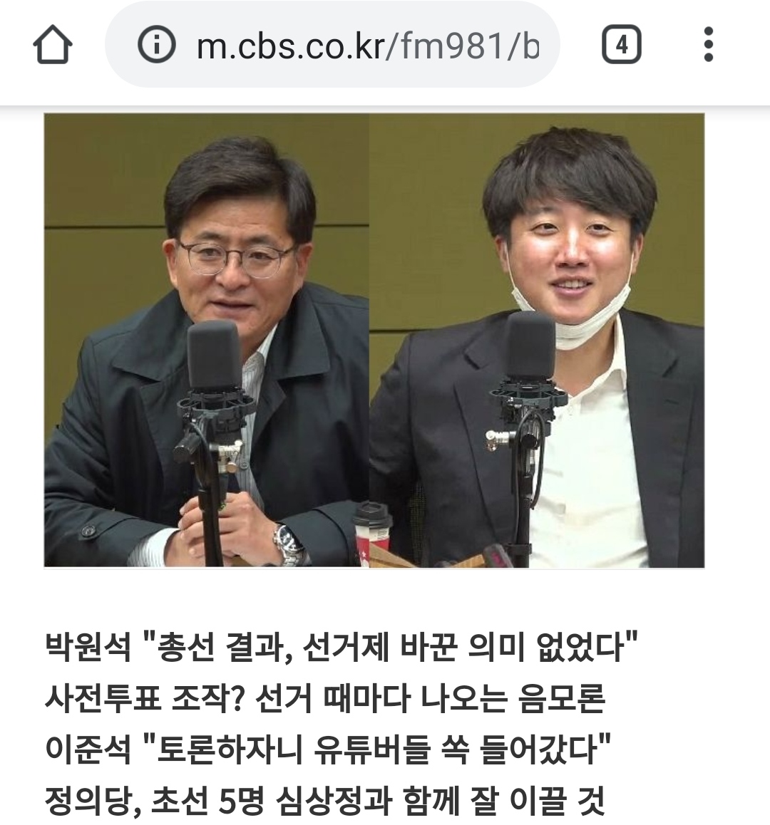 4/22 (수) "하한가 : 유튜버, 위성정당"- 이준석,박원석(속기본)뉴스쇼| 2020-04-22 07:03:10* 인터뷰를 인용보도할 때는