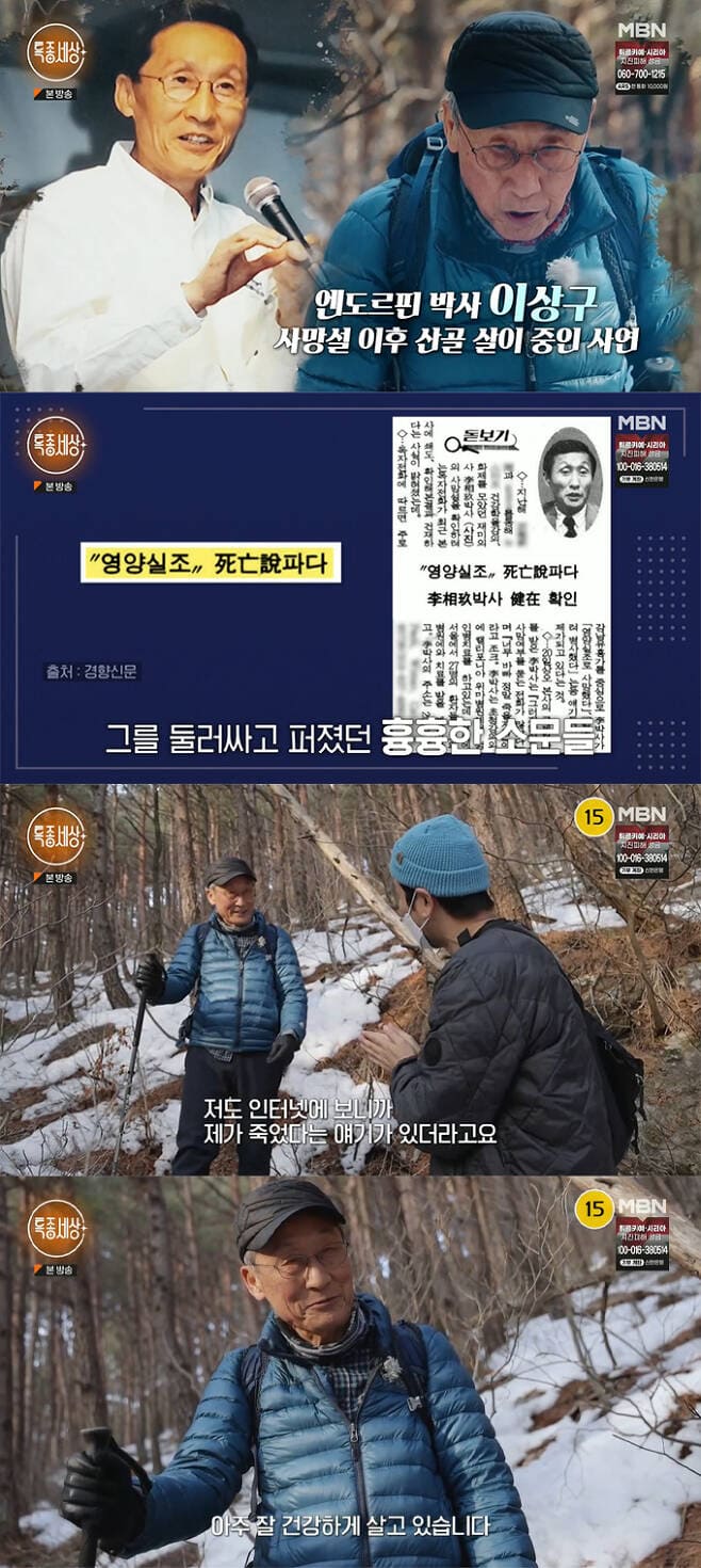 16일 방송된 MBN '특종세상'에서는 1988년 채식 신드롬과 엔도르핀 열풍을 일으켰던 이상구 박사의 근황이 공개됐다. 그는 건강 신드롬을 일으킨 뒤 돌연 자취를 감췄고, 사망설까지 돌았다.