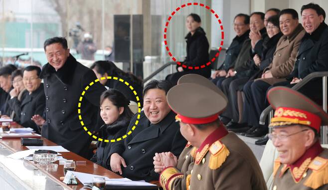 북한 김정은이 지난 17일 광명성절(2월16일)을 기념하여 진행된 내각과 국방성 직원들 사이의 체육경기를 딸 김주애와 여동생인 김여정 노동당 부부장과 함께 관람했다고 조선중앙통신이 18일 보도했다. 김정은 딸 김주애는 중앙석 김 위원장 옆자리에, 김정은 여동생 김여정은 뒷줄 가장자리에 앉았다. /조선중앙통신 연합뉴스