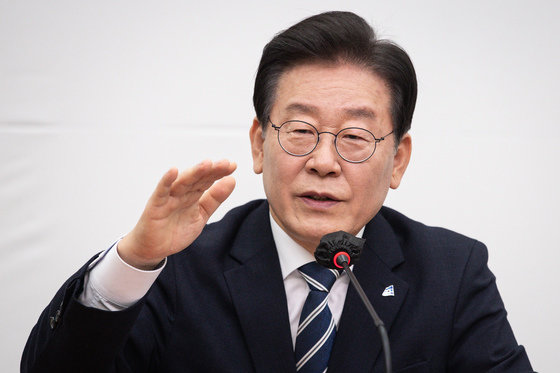 그는 이날 모두발언만 45분간 이어간 뒤 질의응답까지 포함해 66분 동안 정부 여당에 대한 날 선 공세를 이어갔다. 이 대표는 “대선에서 패배했고, 검사를 하던 분이 대통령이 됐고, 무도한 새로운 상황이 벌어졌다”며 “법치 탈을 쓴 사법사냥”이라고 목소리를 높였다. 자진해서 영장심사를 받을 가능성을 묻는 질문엔 “강도와 깡패가 날뛰는 무법천지가 되면 당연히 담장이 있어야 되고 대문도 달아야 한다”고 거부 의사를 못 박았다.