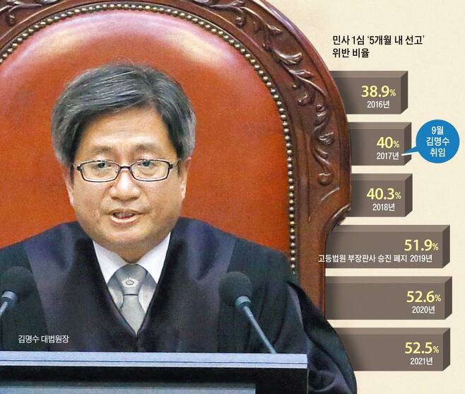 법 안지키는 판사들... 김명수 체제 3년 연속 늑장재판 50% 넘어