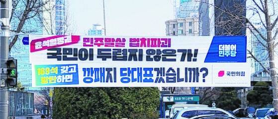 이에 각 정당 홍보담당자들은 “최근 현수막 전쟁이 격화되고 있어 튀는 문구를 쓸 수밖에 없다”고 토로한다. 특히 올해 들어 유독 현수막에 자극적인 내용이 많아진 건, 지난해 12월 11일부터 시행된 ‘옥외광고물 등의 관리와 옥외광고산업 진흥에 관한 법률(옥외광고물법) 개정안’ 때문이다.