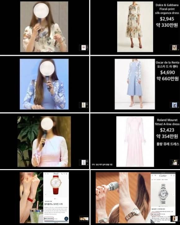 그러면서 “가장 직관적으로 와닿았던 명품 관련 사진들을 캡처해뒀다”며 정씨가 그간 착용한 물품 목록을 공개했다.