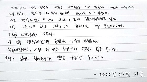 자립준비청년 출신으로 웹툰 작가 데뷔를 앞두고 있는 지혜인씨의 일기. 지씨는 “힘들 때마다 일기를 쓰며 마음을 다잡았다”고 했다. 양수민 기자