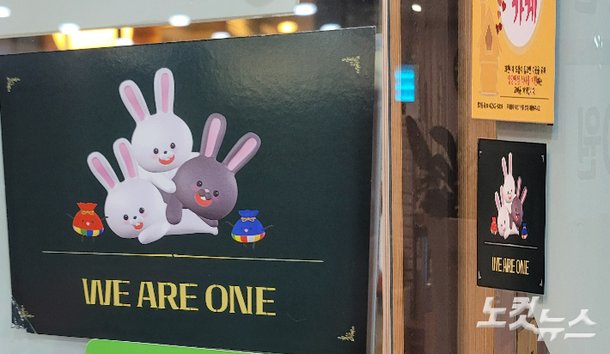 신천지 예배당 인근 상가에 붙은 검은 바탕 토끼 캐릭터 스티커 신천지 관련 청년단체 이름 새겨 용도변경 목적 동의서 서명 조건으로 받은 신천지 스티커 붙였다가 일부 시민들 항의 뗀 경우