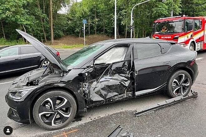 지난해 5월 야르오미르 야그르는 소셜미디어(SNS)에 사고로 일그러진 EV6 사진을 게재하며 “기아가 나를 살렸다”고 밝혔다.