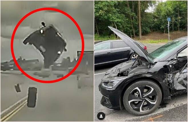 추돌사고 때 생명을 구한 기아 EV6 [사진출처=야그르 인스타그램 캡처]