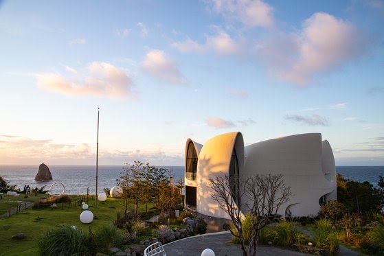 코스모스는 개장 당시부터 화제가 됐다. 울릉도는 물론 국내에 흔치 않은 호화로운 시설과 빼어난 건축미 때문이다. 하버드대 건축과 출신인 김찬중 경희대 교수(건축사무소 더시스템랩 대표)가 설계한 디자인이 독보적이다. 새하얀 건물 두 채는 꽃잎을 연상시키기도 하고, 우주선 같기도 하다. 천문 기상대 컴퓨터로 관측한 해와 달의 궤적을 고려해 설계했단다. 위치도 남다르다. 울릉도에서도 기 좋기로 소문난 송곳봉 자락, 쪽빛 바다가 시원하게 펼쳐지는 명당에 자리한다. 풍수지리와 건축에 문외한이어도 자연과 건축물이 기막히게 어우러진 걸 단박에 알 수 있다. 2020년 월드 럭셔리 호텔 어워즈에서 '럭셔리 빌라 리조트' 부문을 수상했고, 한국관광공사로부터 울릉도 최초의 품질인증 숙소로 지정됐다는 건 부차적인 설명일 따름이다.