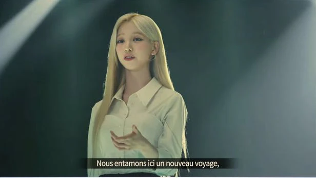 20일(현지 시각) 프랑스 파리에서 열린 국제박람회기구(BIE) 172차 총회에서 걸그룹 에스파의 멤버 카리나가 영상으로 2030부산세계박람회 유치를 위한 프레젠테이션(PT) 시작을 알리고 있다. /BIE 홈페이지