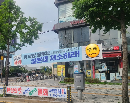 아침에 출근하면서 플랭카드를 봤다. 혹시나 해서 누가 붙였는지는 가려줬다. 이런 플랭카드가 즐비하다. 애매하게도 뭔지도 모르는 걸 제소하라고 하고 있는데, 부화뇌동하는 무리 중의 1인이라 보여진다.