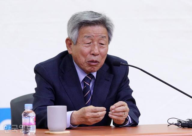 유인태 전 국회 사무총장이 5월 9일 국회 의원회관에서 열린 국민공감 국민의힘 공부모임에서 특강하고 있다. 고영권 기자