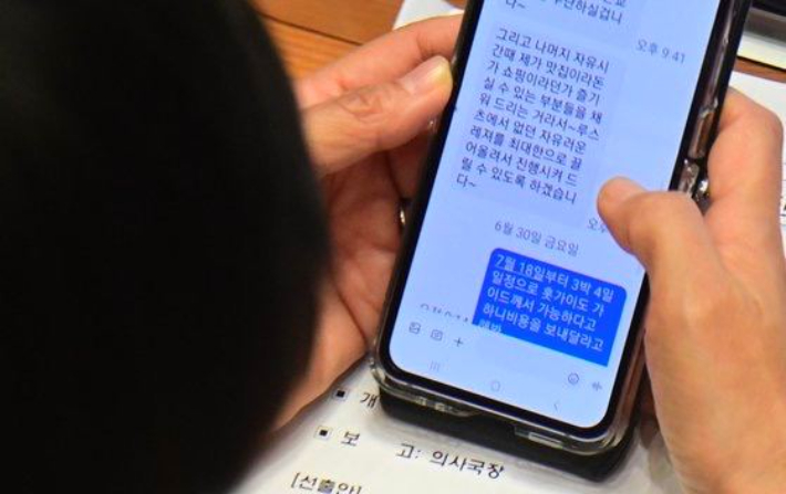 ◇ 김현정> 지금 저희가 그 사진을 좀 보여드리고 있는데요. 저게 김영주 부의장의 휴대폰 본회의장에서 휴대폰이 포착된 겁니다. 좀 읽어보자면 일본 홋카이도의 어느 어느 어느 지역이 한국인 별로 없이 골프 칠 수 있다. 맛집과 쇼핑 등을 최대한으로 끌어올려서 진행시켜 드릴 수 있게 하겠다. 이런 내용을 여행사에서 보낸 건가요? 김영주 의원한테. 누가 보낸 거죠? 이런 이런 곳 추천합니다. 이런 곳을 어떻게 하겠어요? 여행사 쪽하고 주고받은 건지 보좌관하고 주고받은 건지.