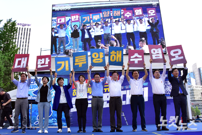 오염수 시위, 민주당 내부 갈등 진화 도구