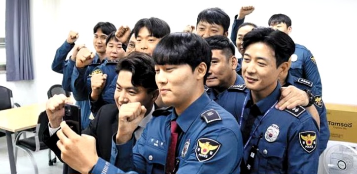 더불어민주당 오영환(앞줄 맨 왼쪽) 의원이 6일 국회경비대를 찾아 대원들과 사진을 촬영하고 있다. /오영환 의원 페이스북