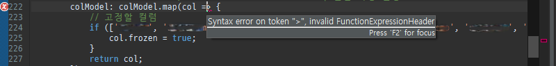 [Error해결] 이클립스 JavaScript Syntax error on token ">", invalid FunctionExpressionHeader 해결방법 (수정)