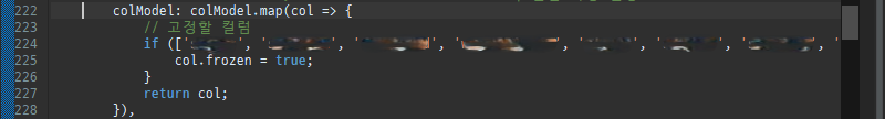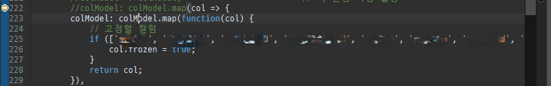 오류의 원인은 colModel 속성 설정 시 사용한 화살표 함수(Arrow Function) 문법이 잘못되었기 때문이라 한다.