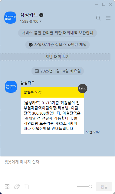 그래서 상담원과 통화하다가 삼성카드 리볼빙 서비스를 이용하라는 권유를 받게 되었다.