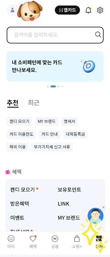 Step 1. 삼성카드 앱에서 하단의 '전체 아이콘'을 클릭한다.