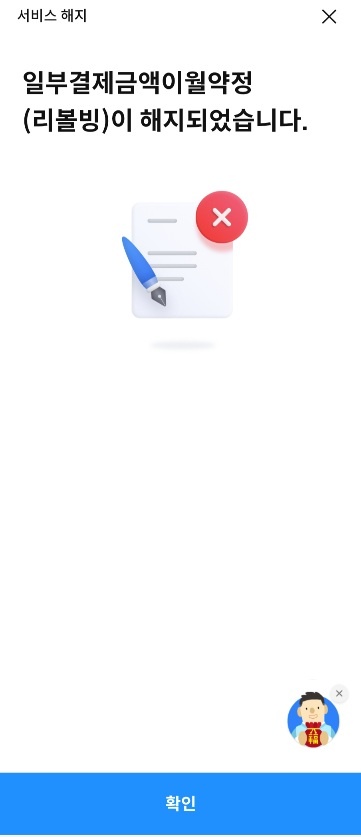 - 재가입 제한: 리볼빙 서비스를 해지한 후에는 일정 기간 재가입이 제한될 수 있습니다.