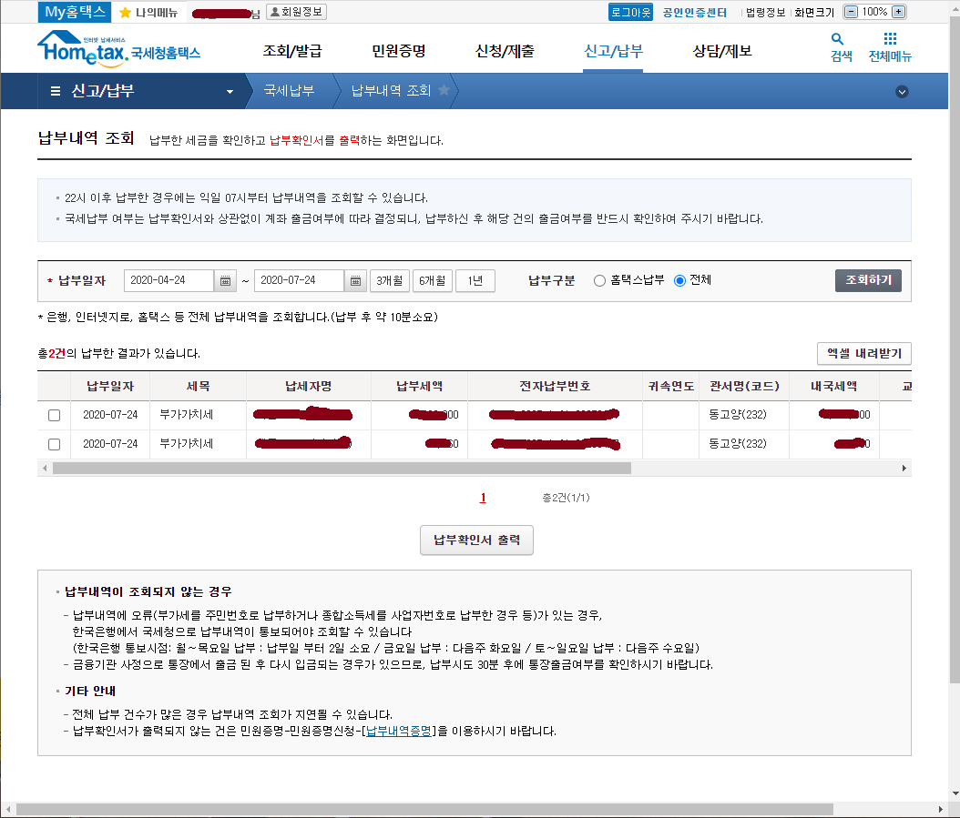 그래서, 국세청에다가 전화로 물어봤더니, 입금이 제대로 됐는지 확인하란다.