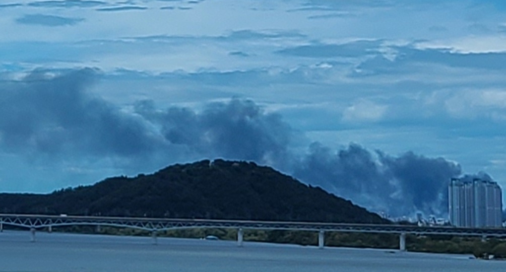 구름일거야 했는데, 보니까 검은 연기가 쭉 올라오는 것이었다.