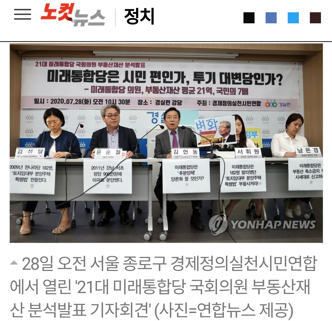 ◆ 김성달> 없다는 게 아니라 그때는 미래통합당은 주택처분서약을 하지 않았기 때문에 그 내용과 관련해서는 저희가 발표할 건 없지만 부동산 분석 결과는 이미 앞서 한 번 발표를 했고요. 이번에 미래통합당만 별도로 또 따로 추려서 발표를 하게 됐습니다.