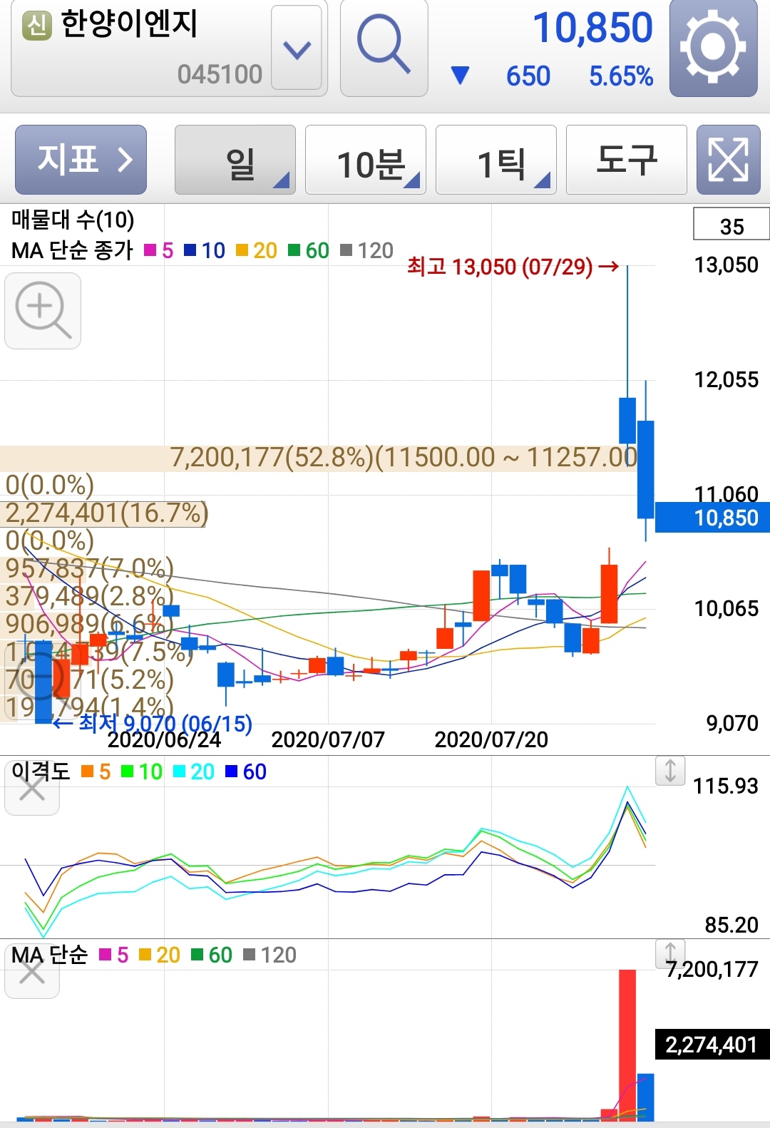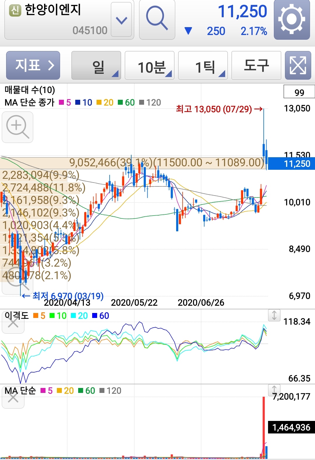 저가일 때 담아뒀다가 뉴스 나오면 팔면 되는 주식이긴 한데, 그 타이밍이 쉽지는 않다.