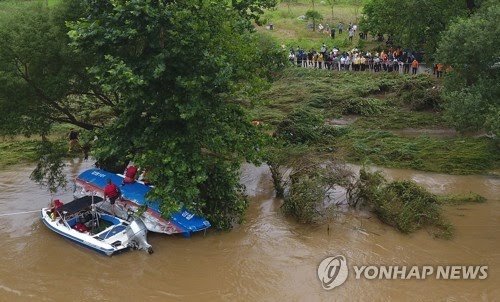 수상스키 업체 관계자는 "물 위에 반 정도 올라와 있는 배를 발견했는데, 나무에 걸려 있는 것 같다"며 신고한 것으로 알려졌다.