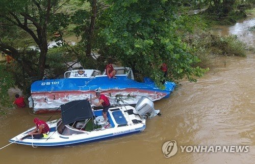 (가평=연합뉴스) 이재현 권숙희 박영서 기자 = 지난 6일 강원 춘천시 의암댐에서 전복돼 실종된 선박 3척 중 경찰정이 7일 오전 사고 지점으로부터 14㎞ 하류에서 발견됐으나 실종자는 발견하지 못한 것으로 파악됐다.