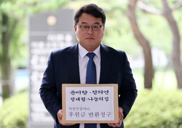 대책모임의 소송을 맡은 김기윤 변호사는 12일 서울중앙지방법원 동관 앞에서 기자회견을 갖고 "후원자 5명이 정대협과 정의연, 나눔의 집, 그리고 윤미향 국회의원(전 정의연 이사장)을 상대로 소송을 제기한다"고 밝혔다. 피고에 정의연이 포함된 후원금 반환소송은 이번이 처음이다.
