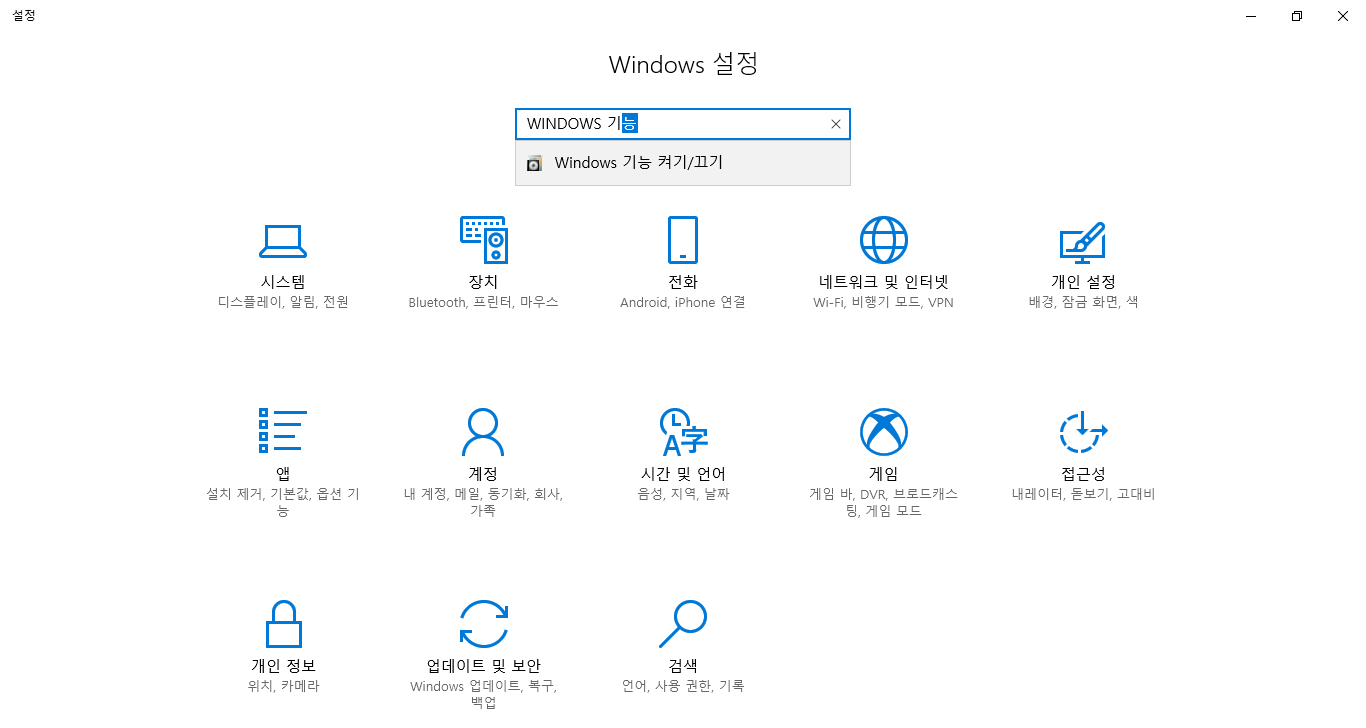 (2) 'WINDOWS 기능' 이라고 입력하면
