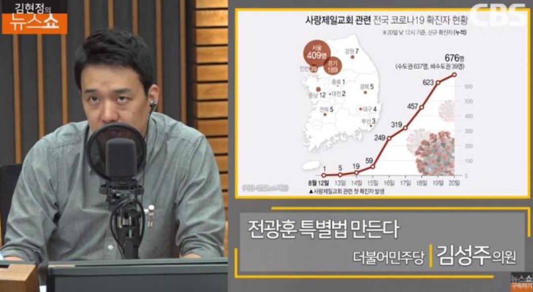 조금 전에 들으신 대로 지금 상황이 매우 심각합니다. 그래서 여당인 민주당은 방역지침을 위반한 사람에 대한 처벌을 강화하고 또 손해배상 청구 근거 규정도 명확히 추가해서 당국의 통제권한을 확대하려고 하는데요. 제2, 제3의 전광훈 사태를 막자는 거겠죠. 자세한 이야기를 들어보고 싶습니다. 이른바 전광훈 방지법으로 불리죠. 감염병 예방법 일부 개정법률안을 대표 발의한 민주당 김성주 의원을 연결하겠습니다. 의원님, 안녕하세요.
