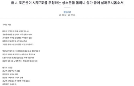 아래는 해당 청원글 전문.