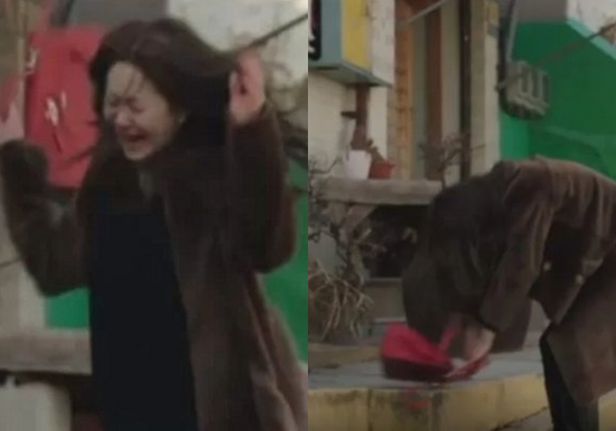 배우 고현정이 JTBC 드라마 '너를 닮은 사람'에서 분노하는 장면을 연기하고 있다. 그가 바닥에 던진 가방은 1500만원대의 에르메스 켈리백이다. /JTBC