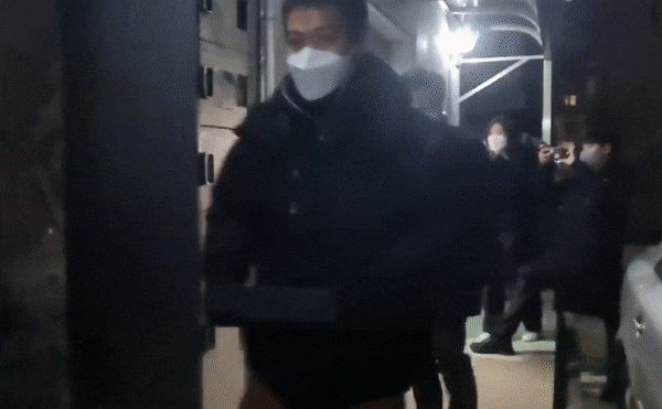 이후 0시 55분쯤부터 경찰들이 압수물품들을 나르기 시작했다. 경찰은 5번을 오가며 책가방 크기의 파란색 박스 10개, 팔뚝만한 검정색 박스 12개 등 박스 22개를 차에 실었다. “박스 안에 담긴 것이 금괴 맞느냐”는 취재진의 질문에 경찰은 대답하지 않았지만, 경찰은 무거운 물건을 드는 듯 두 손에 힘을 줘 박스를 날랐고 “조심히 다뤄주세요”라는 말을 하기도 했다. 한 경찰 관계자는 “저 작은 검정 박스 하나의 무게는 약 20kg 정도 된다”고 했다. 마지막으로 빈 상자가 담긴 큰 박스를 하나 더 차에 실은 경찰은 1시 5분쯤 파주에서 서울로 출발했다.