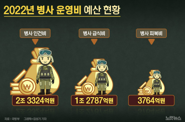 ◆ 김광일> 서욱 장관이 그 구조도 괜찮은 것 같다, 검토해 보겠다고 한 이후에 국방부가 계산을 직접 해 봤습니다. 그래서 그 국방부의 계산했던 자료를 저희가 받아봤는데 피복비, 그러니까 옷값 그리고 밥값을 다 더하면 한 1조 6000억원 정도가 추산이 되어 있었습니다.