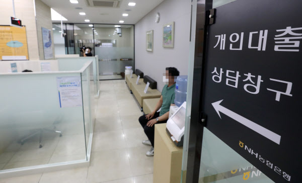 [땅집고] 지난 8월 서울 중구 NH농협은행 본점 대출 창구에서 한 시민이 대출 관련 업무를 보기 위해 대기하고 있다. /뉴시스
