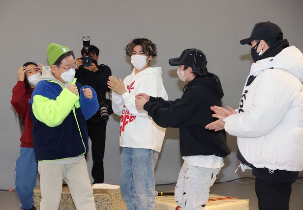 이재명 더불어민주당 대선 후보가 유명 안무가 ‘리아킴’을 만났다. 이 후보는 머리끝부터 발끝까지 Z세대(1995년 이후 태어난 세대) 최신 유행 패션으로 차려 입고 댄서들과 춤을 췄다.