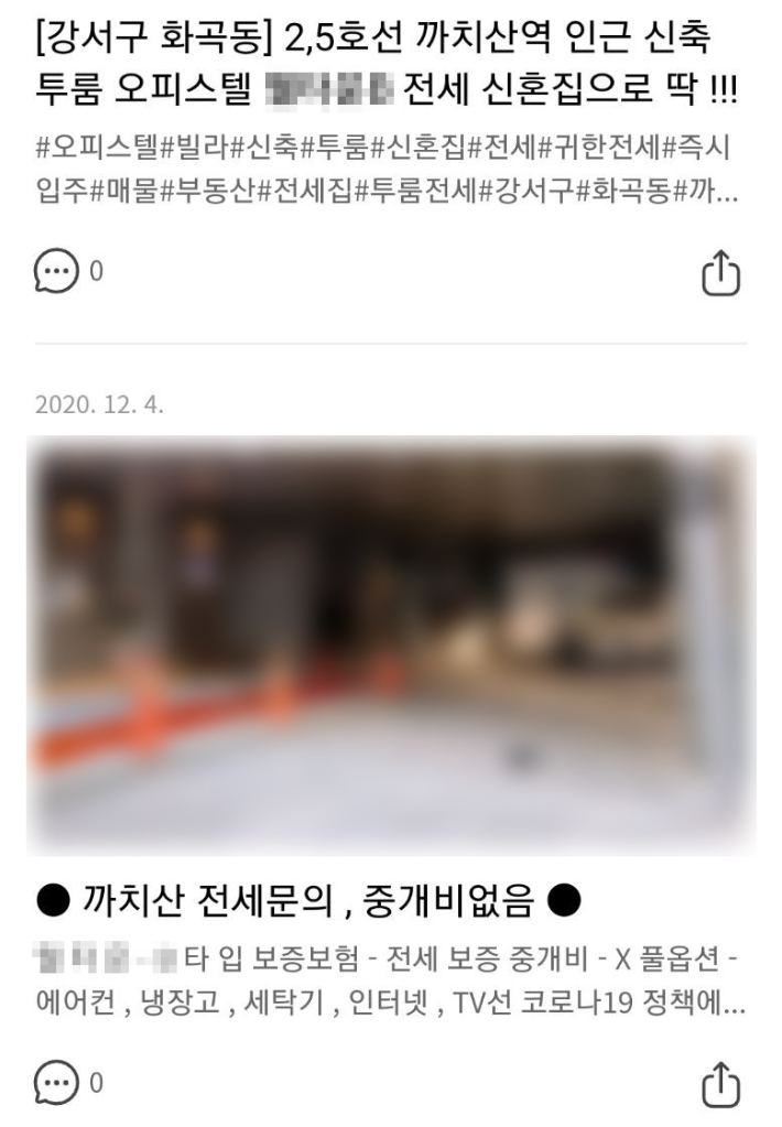 ◇ 김현정> 지금 화면에 부부가 운영하던 그 부동산 블로그를 저희가 보여드릴 텐데 이런 식으로 '까치산 전세문의, 중개비 없음' 평범한 블로그로 보이네요?