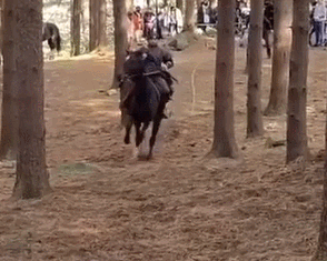 공개된 현장 영상에는 말의 발목을 줄로 묶어 강제로 쓰러뜨리는 장면이 포착됐다. 동물자유연대 SNS 캡처