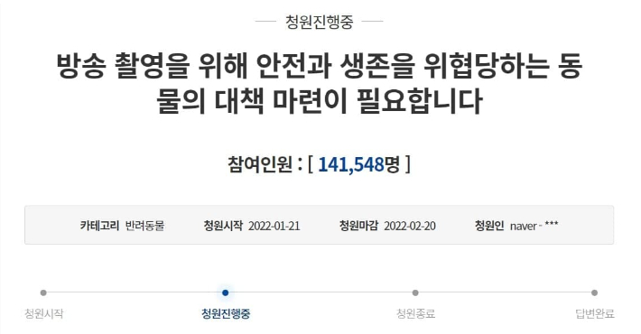 ◇ 김현정> 지금 청와대 국민청원 게시판에는 방송 촬영 시 동물보호 대책을 마련해 달라는 글이 올라왔고 10만 명이 넘게 동의를 한 상태입니다. 그런데 제가 보니까 2020년에 이미 임 감독께서 한 130페이지 분량으로 동물촬영 미디어가이드라인이라는 것을 만들어서 배포를 하셨더라고요. 이미. 없는 게 아니에요.
