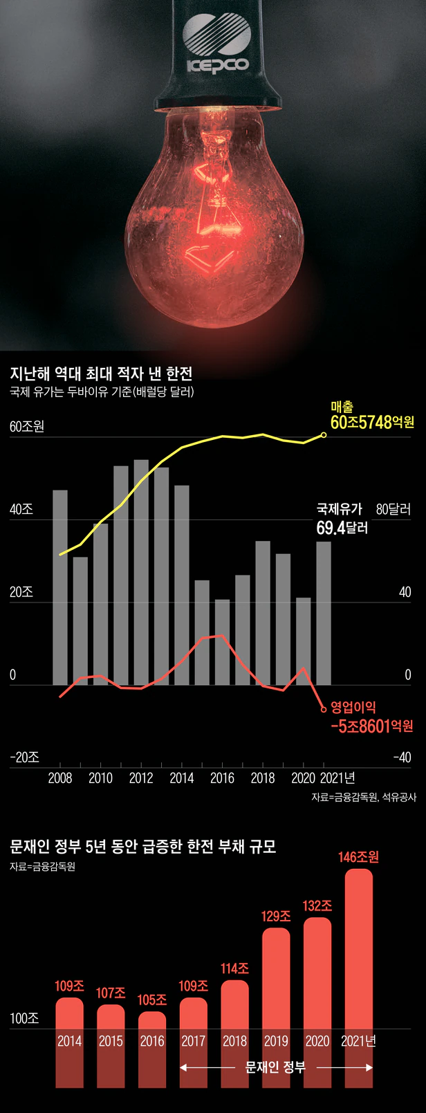 한전은 단가가 비싼 LNG와 태양광·풍력 전기의 비중을 높일 수밖에 없었고 지난 5년 새 부채가 40조원 이상 불었다. 작년엔 사상 최대인 5조8000억원의 적자를 기록했다. 전문가들 추산에 따르면 문 정부 5년간 원전 이용률 하락만으로도 10조2000억원의 손실이 발생했다. 세계 최고 경쟁력을 갖고 있던 한국의 원전 산업 생태계가 상당 부분 무너졌다. 다음 정부가 탈원전 정책을 없애도 회복할 수 있을지 의문이다. 이렇게 분탕질 치고 임기 말에 ‘원전을 충분히 활용하라’고 하고 있으니 국민은 대체 무슨 말을 해야 하나. 그러면서도 문 대통령은 이날 회의에서 탈원전이 잘못됐으니 포기한다는 입장은 끝내 밝히지 않았다. 국민에게 막대한 피해를 주고서도 절대로 자신의 잘못은 인정하지 않는다.